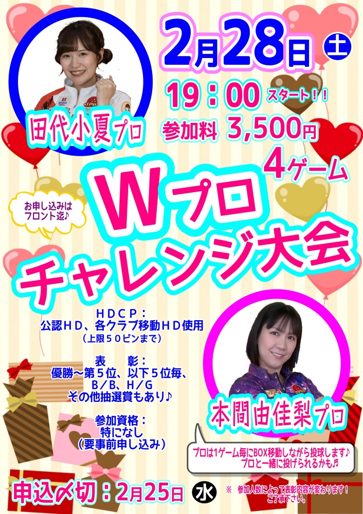 2/28(土)19:00より、本間由佳梨プロ・田代小夏プロチャレンジを開催いたします。皆様奮ってご参加ください!