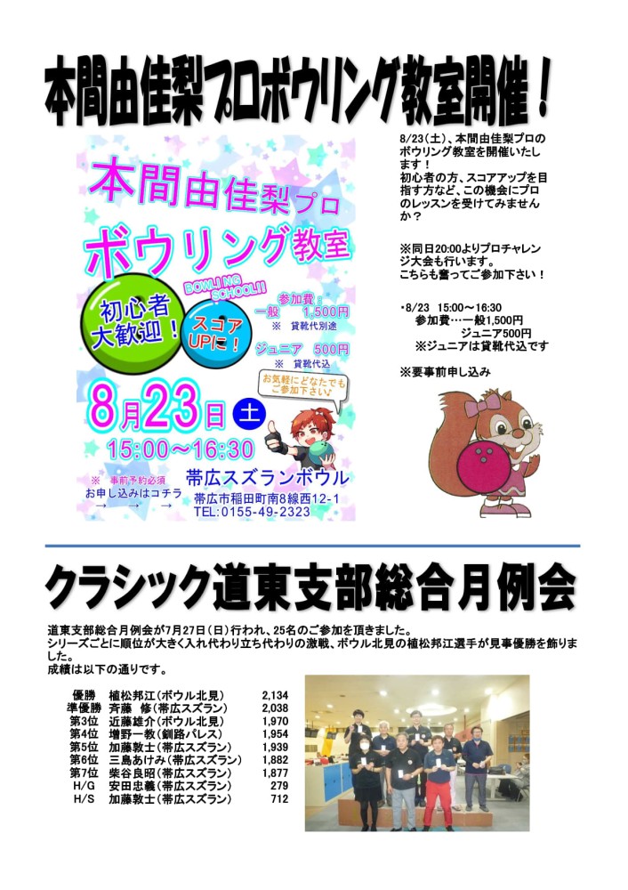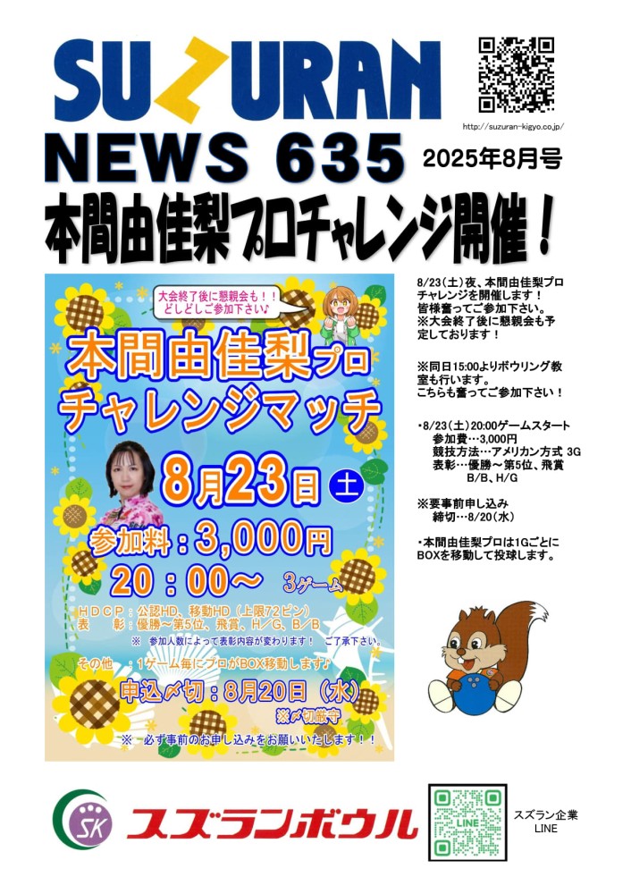 令和7年8月のスズランニュースを掲載させて頂きました。 会員様はじめスズランボウルでお楽しみの皆様に、是非ご一読いただければ幸に存じます。 内容は下記をご覧ください。