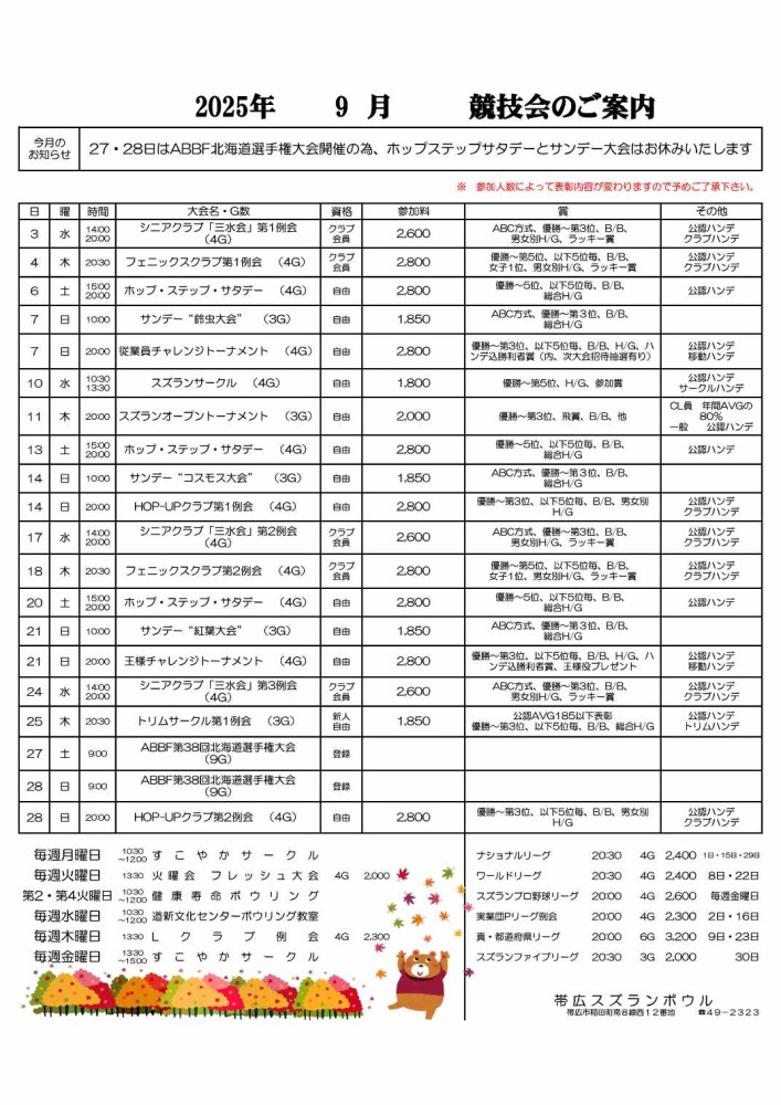 令和7年9月の競技会案内を更新致しました。 詳しくは下記ご案内をご覧ください。