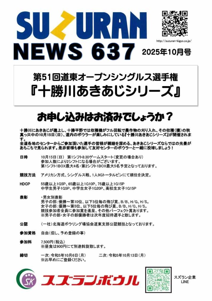 令和7年10月のスズランニュースを掲載させて頂きました。 会員様はじめスズランボウルでお楽しみの皆様に、是非ご一読いただければ幸に存じます。 内容は下記をご覧ください。